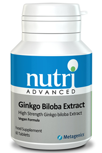 Nutri Advanced Ginkgo Biloba Extract High Strength Ginkgo Biloba Extract Nutri Advanced Ginkgo Biloba Extract is a standardised herbal formulation. Ginkgo biloba may help to support cognitive function and micro-circulation. Suggested use: 1-2 tablets daily with food, or as directed. Other ingredients: Tableted with: Silicon dioxide, Dicalcium phosphate, Croscarmellose, Stearic acid, Magnesium stearate. Warnings: Consult with a medical doctor if on anti-coagulant medication. If pregnant, breastfeeding, taking any kind of medication or have a medical condition, consult a healthcare practitioner before using this product. Supplements should not be used as a substitute for a varied diet and healthy lifestyle. Results may vary between individuals.