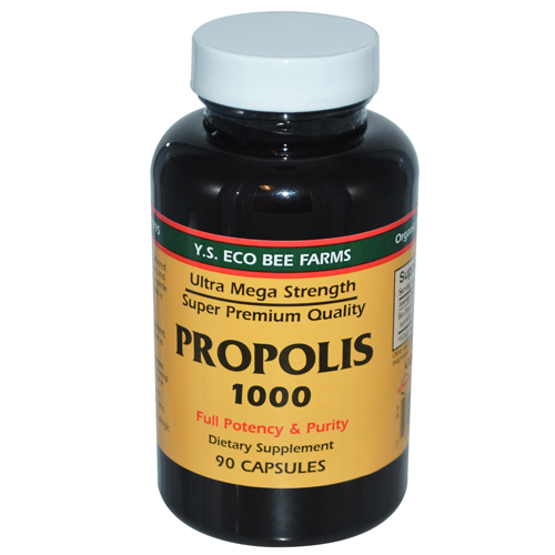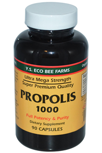 PLEASE NOTE: NO LONGER VEGGIE CAPSULES Bee Propolis 1000 - by Y.S. Eco Bee Farms Ultra Mega Strength - Full Potency & Purity Propolis is a resinous substance gathered by bees from certain trees and used to line the hive to keep it sterile and maintain bee colony health. Bee propolis is one of nature's richest sources of bioflavonoids. Bioflavonoids, sometimes referred to as vitamin P, are 'super-antioxidants' found in many natural foods and by-products. Y.S. Beekeepers have been dedicated to the research and development of the highest quality bee products for generations. Suggested use: As a dietary supplement, take 1-2 capsules twice a day or more as needed. Other ingredients: Gelatin, carob powder, magnesium stearate. Free of yeast, salt, sugar, starch, preservatives and common allergens. Warnings: Bee products may cause an allergic reaction in some people.