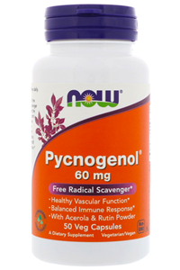 Pycnogenol - by Now Foods With Acerola & Rutin Powder Pycnogenol is a unique combination of proanthocyanidins derived from the bark of the French Maritime Pine Tree. This natural combination, which includes procyanidins, bioflavonoids and organic acids, offers a variety of health benefits. Now Foods Pycnogenol Capsules are made with Acerola (a fruit rich in vitamin C) and Rutin (a flavonoid) powder and are a GMP quality assured and vegetarian / vegan food supplement. Suggested use: As a dietary supplement, take 1 capsule 1 to 3 times daily. Other ingredients: Cellulose (capsule), cellulose powder and magnesium stearate (vegetable source). Not manufactured with wheat, gluten, soy, milk, egg, fish, shellfish or tree nut ingredients. Produced in a GMP facility that processes other ingredients containing these allergens. Warnings: For adults only. Consult physician if pregnant/nursing, taking medication, or have a medical condition. Keep out of reach of children.