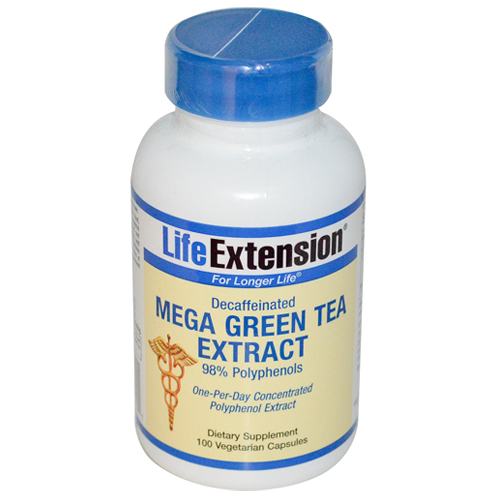 Mega Green Tea Extract - by Life Extension One-Per-Day Concentrated Polyphenol Extract The botanical extract in Life Extension's Mega Green Tea Extract has been concentrated and dual standardised. This process ensures the highest quality, consistency and biological activity. Each serving (1 capsule) contains a small amount of caffeine (up to a maximum of 3.6mg). Since one cup of decaffeinated tea contains at least 9mg of caffeine, the small amount in this supplement will most likely not induce a stimulating effect. Suggested use: Read the entire label and follow the directions carefully prior to use. Take one (1) capsule daily with or without food, or as recommended by a healthcare practitioner. Other ingredients: Vegetable cellulose (capsule), vegetable stearate, rice flour. Contains rice. This product contains no milk, egg, fish, peanuts, crustacean shellfish (lobster, crab, shrimp), soybeans, tree nuts, wheat, yeast, gluten, or corn. Contains no sugar, and no artificial sweeteners, flavours, colours or preservatives. Warnings: Do not exceed recommended dose. When using nutritional supplements, please consult with your physician if you are undergoing treatment for a medical condition or if you are pregnant or lactating.